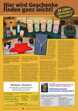 Ausgabe 113 – 2025 wird der Weltladen in Alsdorf-Mariadorf 20 Jahre alt
